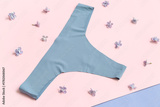Composition with female panties and lilac flowers on color background