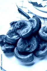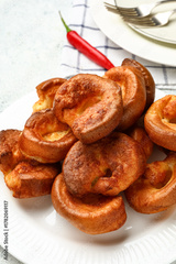 Plate with tasty Yorkshire pudding on light background