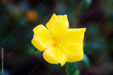 Vivid Yellow Four-Petal Flower Macro Against a Moody Dark Bokeh Background