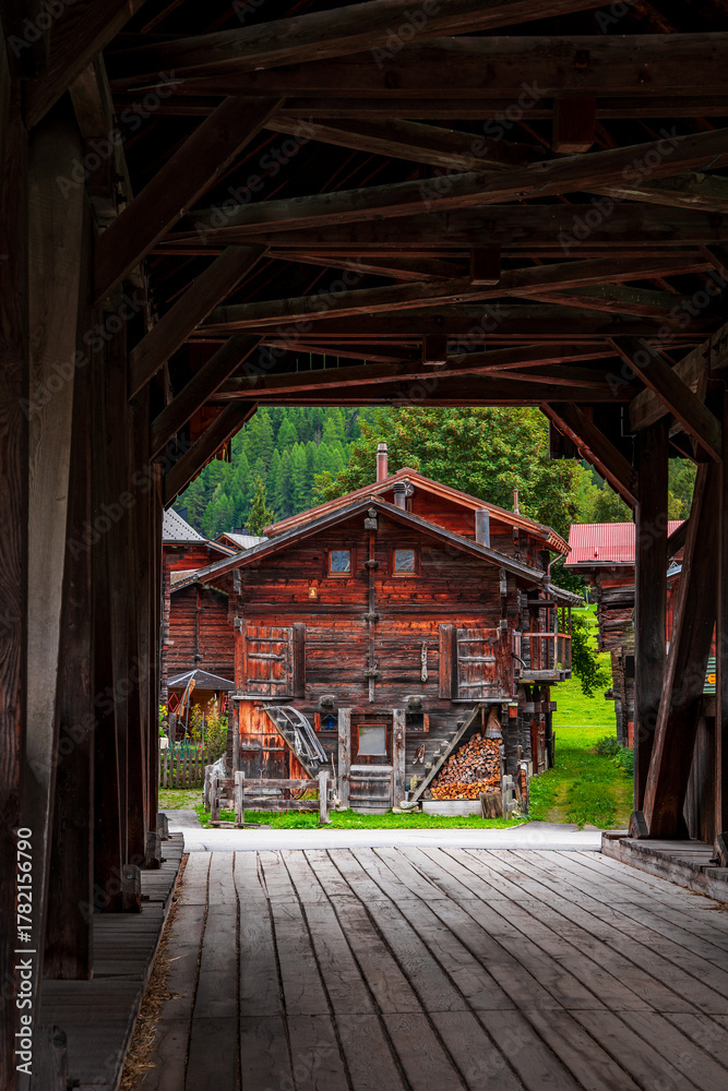 Traditional old wooden houses in a Swiss village.