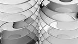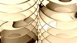 3d rendering. Abstract background of curvy lines. Glass lenses refracting colored iridescent gradients