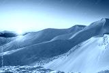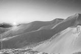 magical sunrise on a mountain peak. snowy Mountain peaks. fairytale calming landscape