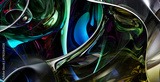 3d render with part of the surreal alien spherical ball flower in curved wavy organic lines in round shapes in plastic and glass material in green and yellow gradient color on black