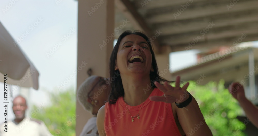 Group of friends dancing and laughing together outdoors, celebrating friendship and connection in a casual and cheerful environment