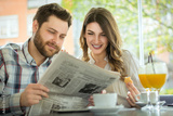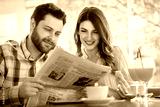 A young couple reading the newspaper