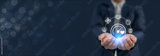 Soft Skills and emotional intelligence in digital business leadership. Digital interface with soft skill performance icons. Soft skills, emotional intelligence, empathy and leadership in business.