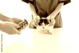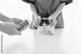 Professional vet doctor helps cat. owner cat holding pet on hands. Cat on examination table of veterinarian clinic. Veterinary care. Vet doctor and cat