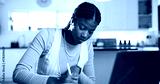Student, black woman and writing in home for study, online education or university research project. Person, notes or planning in apartment with laptop for elearning, college assessment or knowledge.