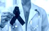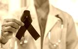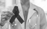 World aids day and national HIV AIDS and ageing awareness month with red ribbon on medical or surgical doctor's hand in hospital background