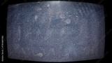 Close-up photo of an old CRT monitor screen showing visible dust, fingerprints, and pixel noise. The curved display and analog texture create a nostalgic, glitchy aesthetic reminiscent of vintage tech