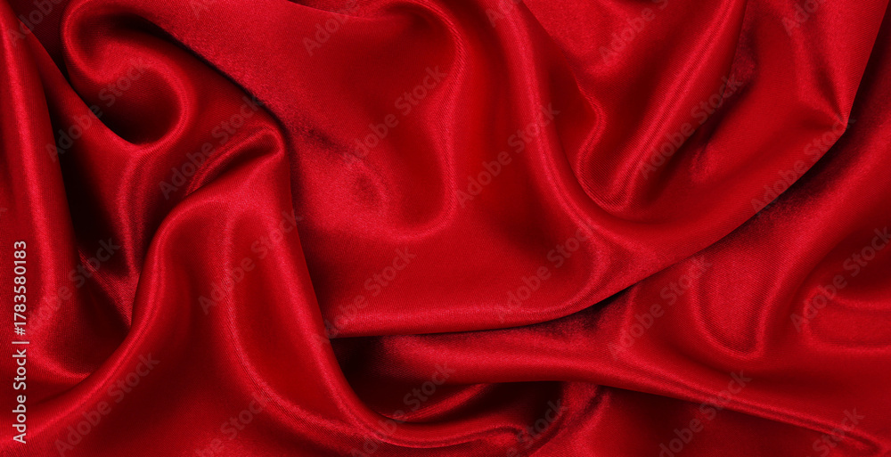 Smooth elegant red silk or satin luxury cloth texture as abstract background. Luxurious valentines day background design