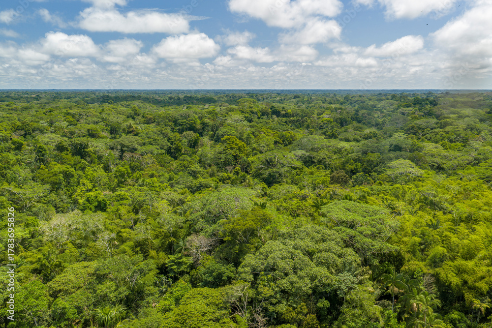 Amazon rain forest huge aerial panorama landscape, puerto narino amazonas colombia