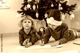 Children writing letters to Santa Claus Saint Nicholas under the Christmas tree