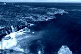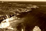 Scenic tropical island landscape with dramatic cliffs and deep blue ocean water