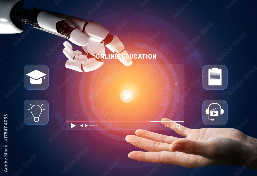 An AI powered online education and e-learning platform. A concept of personalized video courses and adaptive learning in a virtual classroom. Motif