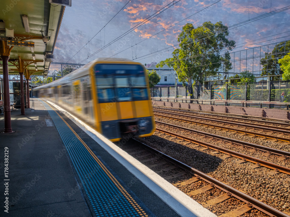 Passenger Train going through Summer Hill train station a suburban Sydney train Station NSW Australia