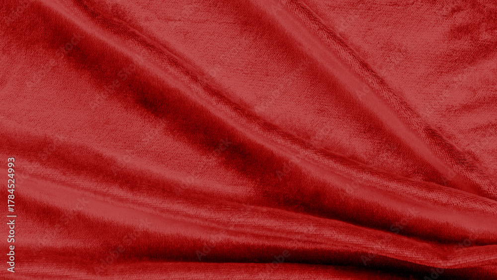 Red velvet background, suede or velour flannel texture made of cotton fabric or wool with soft fluffy velvety satin cloth curtain drapery color material
