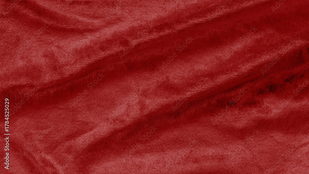 Red velvet background, suede or velour flannel texture made of cotton fabric or wool with soft fluffy velvety satin cloth curtain drapery color material