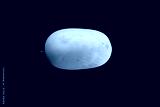 A portrait single whole white melon against a deep black background.