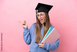 Young student woman wearing a graduate hat isolated on pink background intending to realizes the solution while lifting a finger up