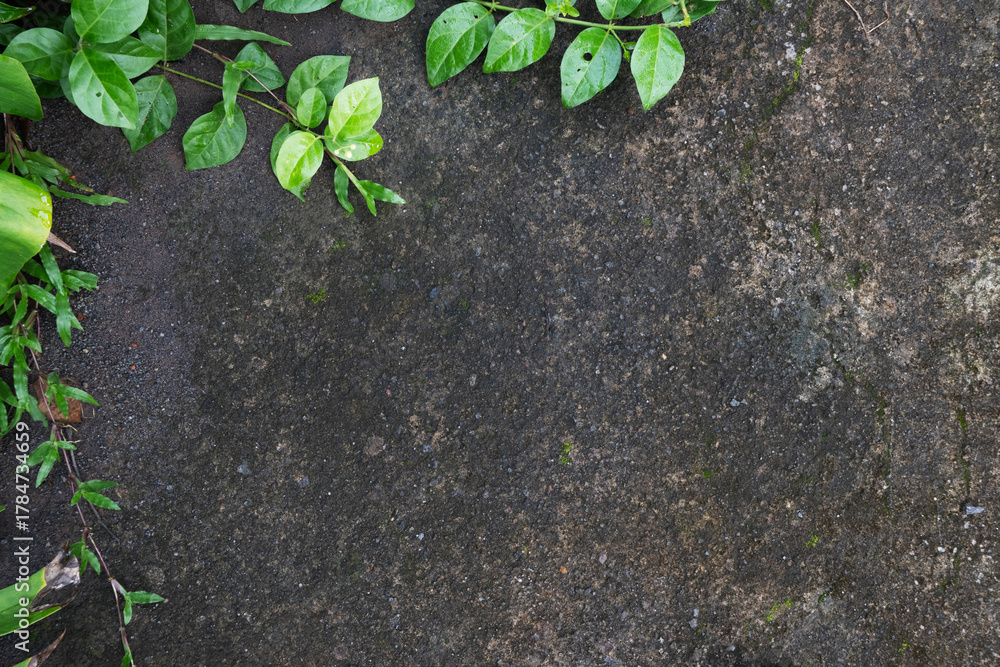 Green Leaves on Stone Surface Natural Background