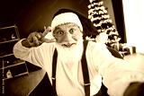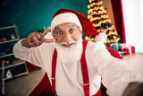 Santa Claus selfie in a cozy Christmas home with a lit tree gifts and festive decorations creating a joyful holiday scene