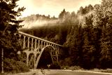 Bridge in the fog near Heceta Head Lighthouse, Oregon coast