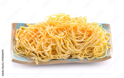 Yellow noodles on a white background