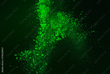 Dynamic Explosion of Vibrant Green Powder Particles Scattering Against a Dark Background