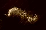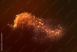 Dynamic Explosion of Vibrant Orange Powder Particles Scattering Against a Dark Background