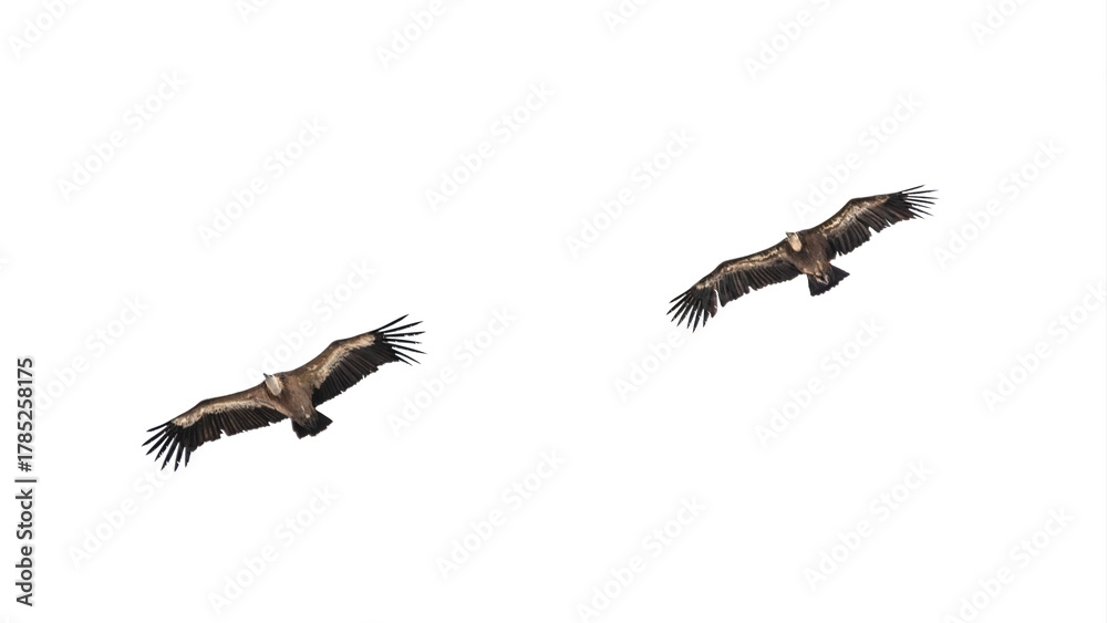 Two Flying Eurasian Griffon Vultures (Gyps Fulvus)
