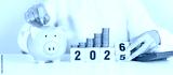 2025 end year to Happy New Year 2026 with piggy bank. Resolution, Goals, Plan, Action, Money Saving, Retirement fund, Pension, Investment and Financial concepts