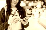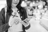 Young Asian woman using smartphone and shopping in cosmetics department store at the mall, Lifestyle concept
