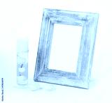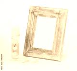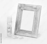 stylish photo frame with a candle laying by it