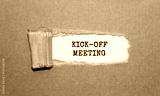 The text KICK-OFF MEETING appearing behind torn brown paper