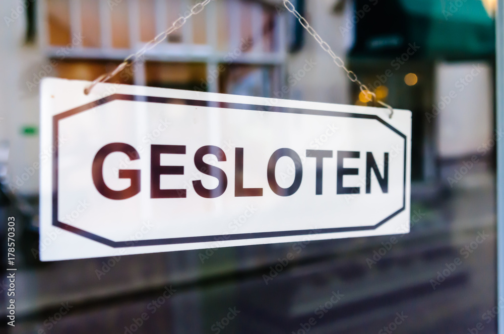 "Gesloten" (closed) sign on the door of a Dutch shop.