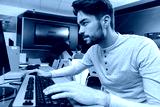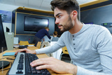 student using desktop computer in classroom