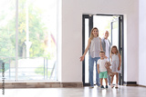 Happy family entering new house