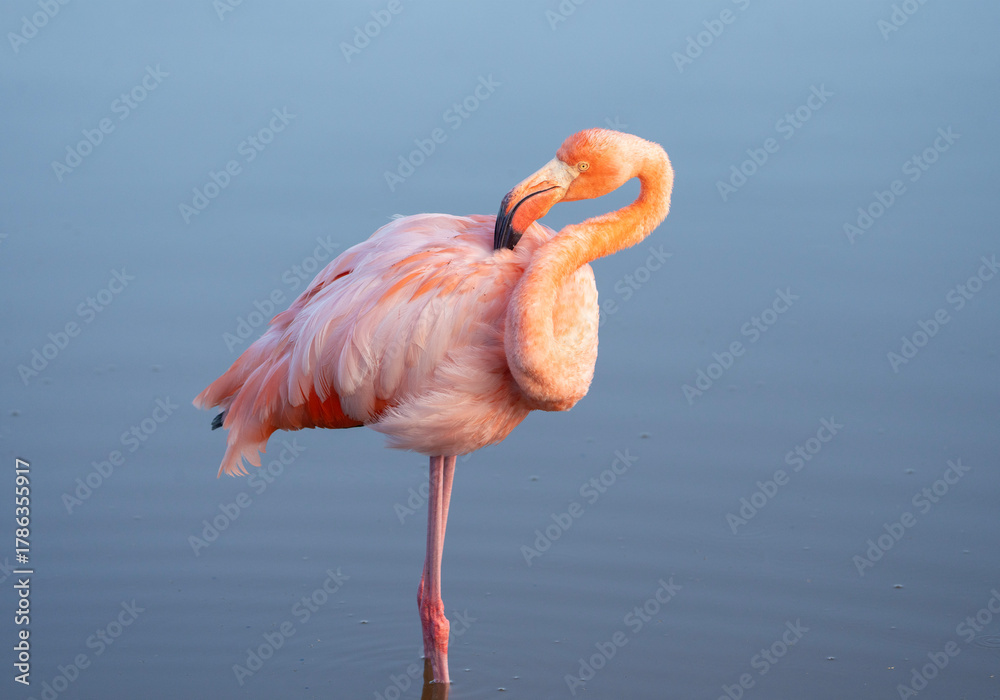 flamingo in water, Phoenicopterus ruber in Galapagos