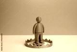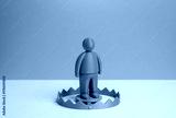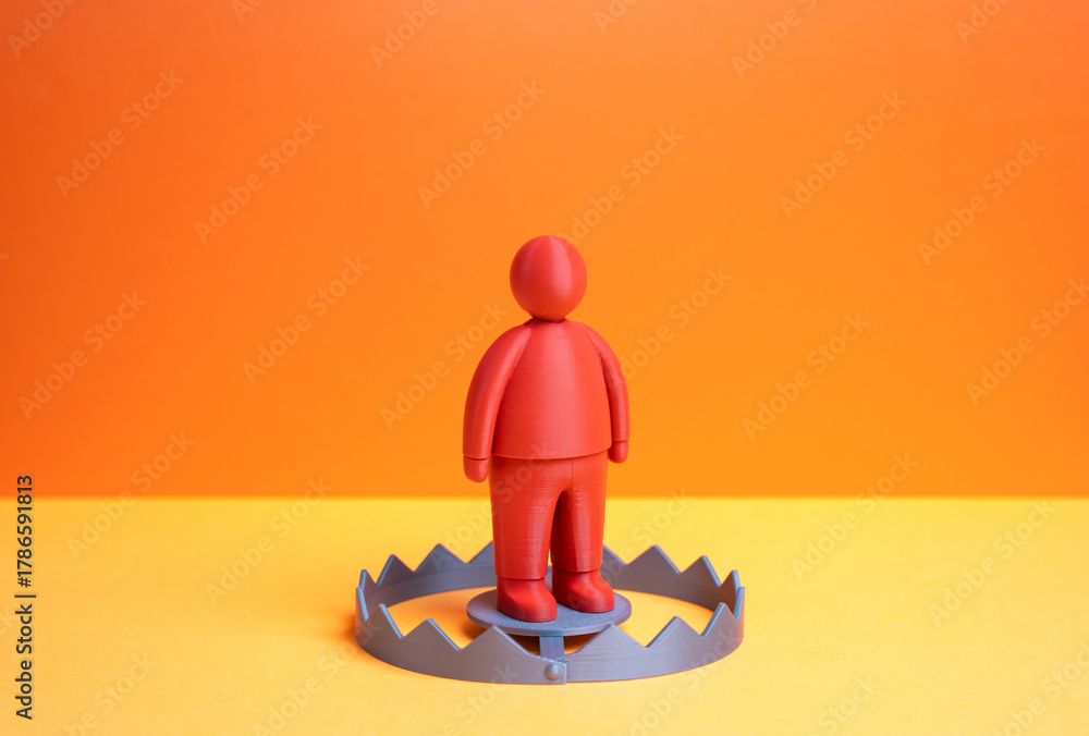 The red man is trapped. A problem employee and a toxic person. Bait for scammers. Workplace toxicity, manipulation, and personal vulnerability. HR awareness, cybersecurity. Corporate environments