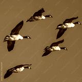 Canada Goose, Branta Canadensis, birds in flight over marshes