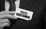 Businessman putting a card with text IDEAL CUSTOMER in the pocket