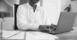Person, hands and typing with laptop, documents or finance in home for budget planning or expenses. Freelancer, remote work or audit with computer, paperwork or bills for financial report in house