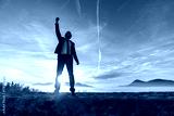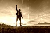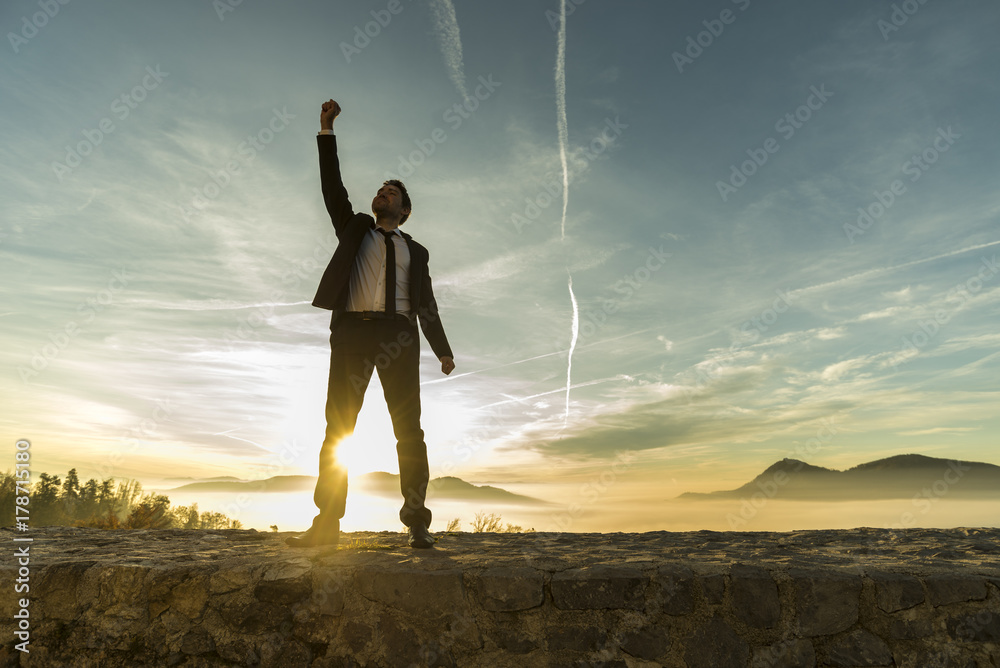 Triumphant businessman greeting a new day
