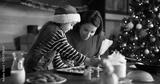 Christmas, mother or child in kitchen with icing, baking help or bonding in holiday season. Happy, festive or family in house with cookie preparation, support or sweet treat frosting for Santa.