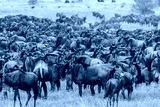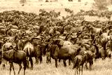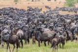 Great Migration: Massive Wildebeest Herd Gathering on the African Plains, Serengeti, Tanzania