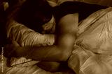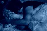 Woman wearing sleep mask lying in bed having deep and healthy sleep