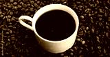 Coffee production, roast and cup with beans for caffeine, espresso beverage or cappuccino blend. Background, cafeteria and closeup of drink in mug for latte, granules or organic grain for hospitality