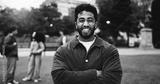 Portrait, college student or man on campus with arms crossed for scholarship, education or degree. Confident, happy person outdoor or pride at university for learning, knowledge or study opportunity.