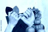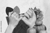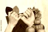 Poster image artwork pop collage of human hand show pinky gesture swear thanksgiving day dry foliage pumpkin autumn harvest